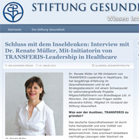 Die Stiftung versteht sich wie TRANSFERIS als Sozialunternehmen und setzt sich seit 1996 engagiert und professionell für mehr Transparenz im Gesundheitssystem ein. Alexandra Köhler, Mitglied des Stiftungsvorstands, führte das Interview mit Dr. Renate Müller von TRANSFERIS. Das vollständige Interview ist im Blog zu lesen und ein Gastbeitrag im Stiftungsbrief 1. Quartal 2015 (Seite 3).